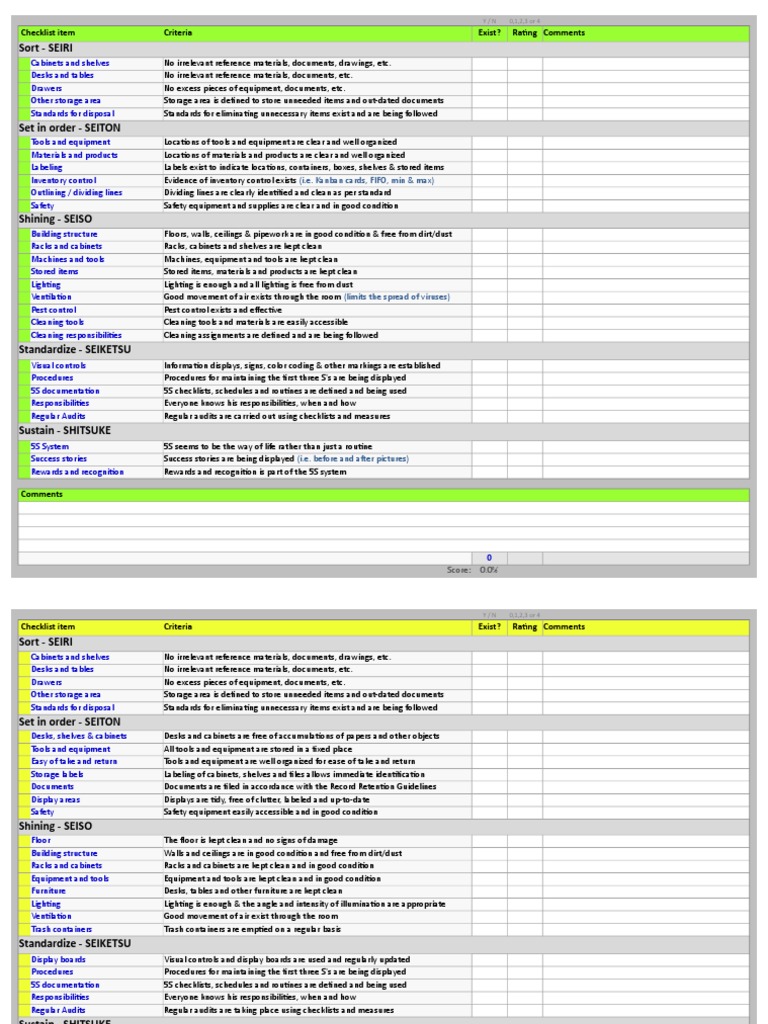 Lean Six Sigma 5S Checklist for Microsoft Excel