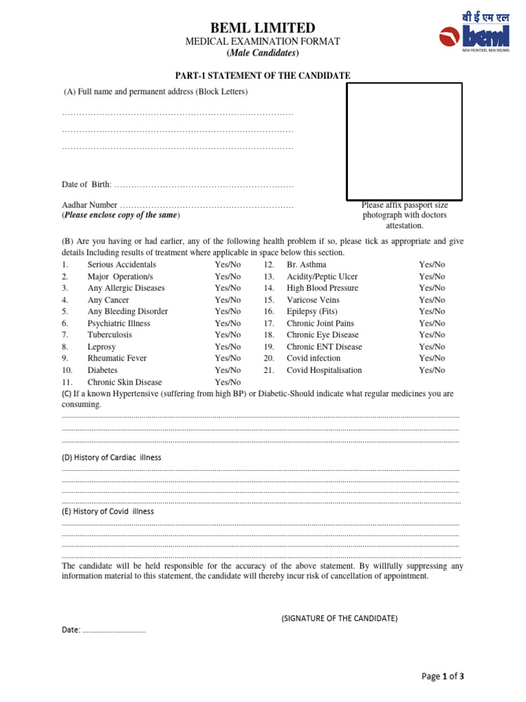 Medical Examination Form Download Free PDF Chronic Condition