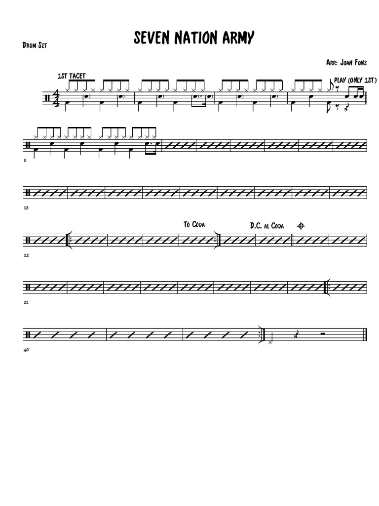 Drum Sheet Music For Seven Nation Army - Seven nation army oo verse. The drum ninja created date: Play along on your drum kit to the interactive drum sheet.