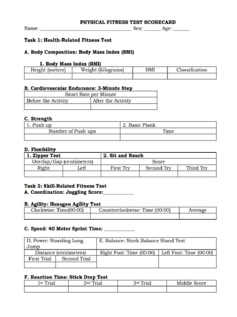 PHYSICAL FITNESS TEST PFT SCORE SHEET FOrevised PDF Body Mass